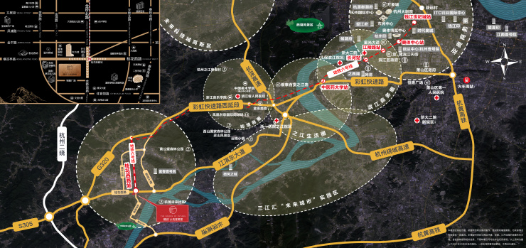 全线串联起富春、之江、滨江、奥体、亚运村、江河汇等“拥江发展”轴上的封面节点,加强了富阳银湖新区、之江新城、杭州高新技术产业开发区、钱江世纪城等产业板块之间的联系。