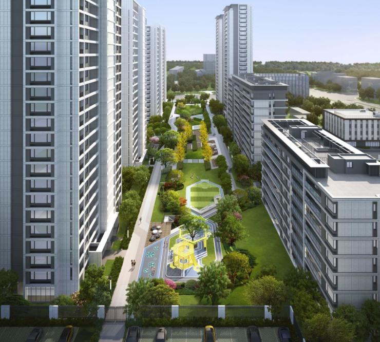 景观上汲韵富春江流,打造“一环、两轴、三园”的多龄社区景观,8幢建筑遵循自然肌理,围合约8000㎡中央景观,落地融创特有的“心·景观love+”体系,以归心和成长运营为核心,通过景观设计赋能生活。