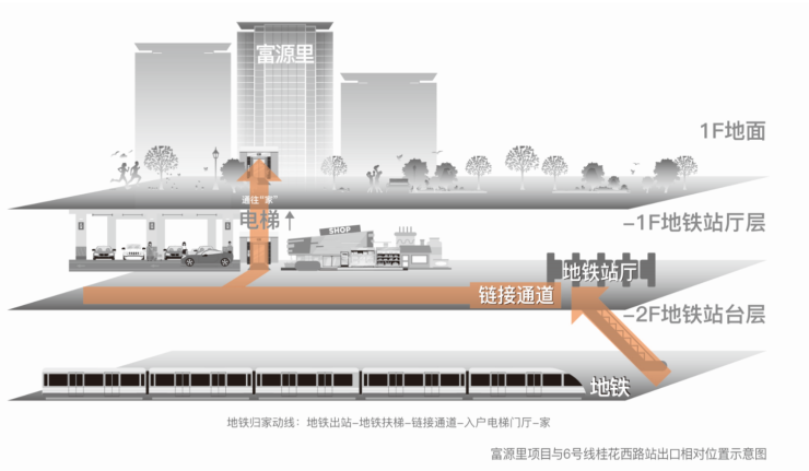 融创富源里,择址富春街道的桂花西路和金桥南路这一“黄金十字轴”处,汲取了“杭州壹号院”TOD+模式的开发经验,正居地铁6号线之上,不仅将地铁出入口与社区地下通道直连,还无缝衔接了地下商业配套,在始发站地铁口天然优势加持下,未来城市生活充满想象力。