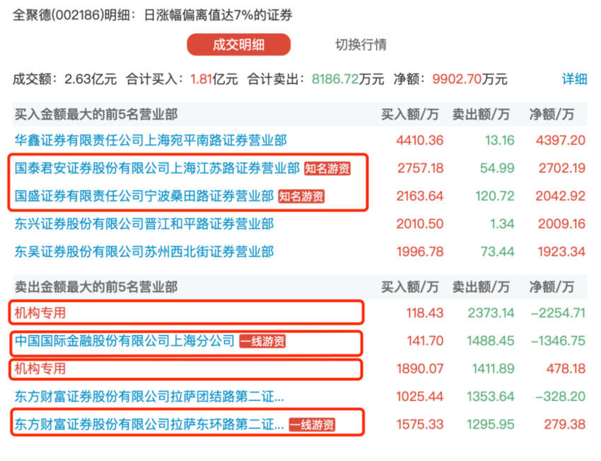 《财经涂鸦》翻看此前涨停上榜的龙虎榜信息,不出所料,市场游资高度参与其中,尤其是股价连续涨停的后期,包括一线游资“东方财富拉萨天团”和“中金上海分公司”,以及知名游资“国泰君安上海江苏路营业部”和“国盛证券宁波桑田路营业部”。而机构席位相对理性,期间整体是处于净卖出状态。
