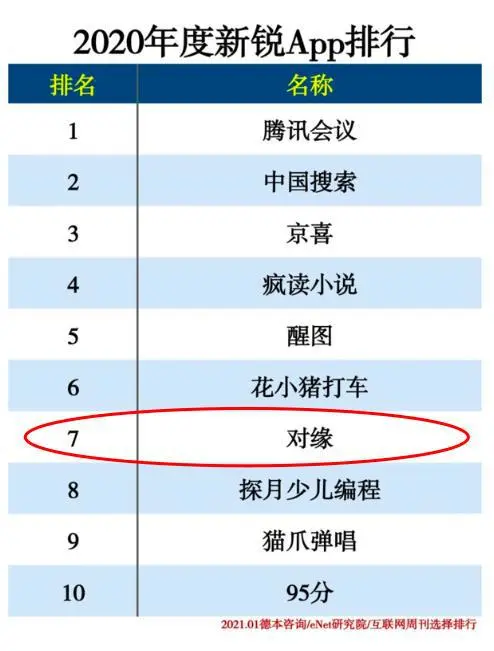 2020年初,积目陆续上线VIP会员服务、增值服务等功能,开始进入变现阶段。据紫金财经报道,2020年,积目APP全年营收近亿元,而在线相亲对缘APP也已稳坐视频相亲赛道第一梯队,用户规模达到行业第二。据中科院《互联网周刊》发布的年度APP排行榜,对缘位列“2020年度新锐APP”第7位。