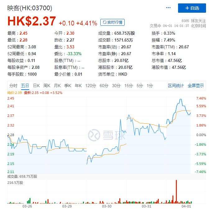 从财报整体数据来看,业绩表现还是比较优异,财报公布后,次日港股开盘,股价2.35港元,涨幅2.62%。截至发稿,映客股价2.37港元,涨幅4.41%。