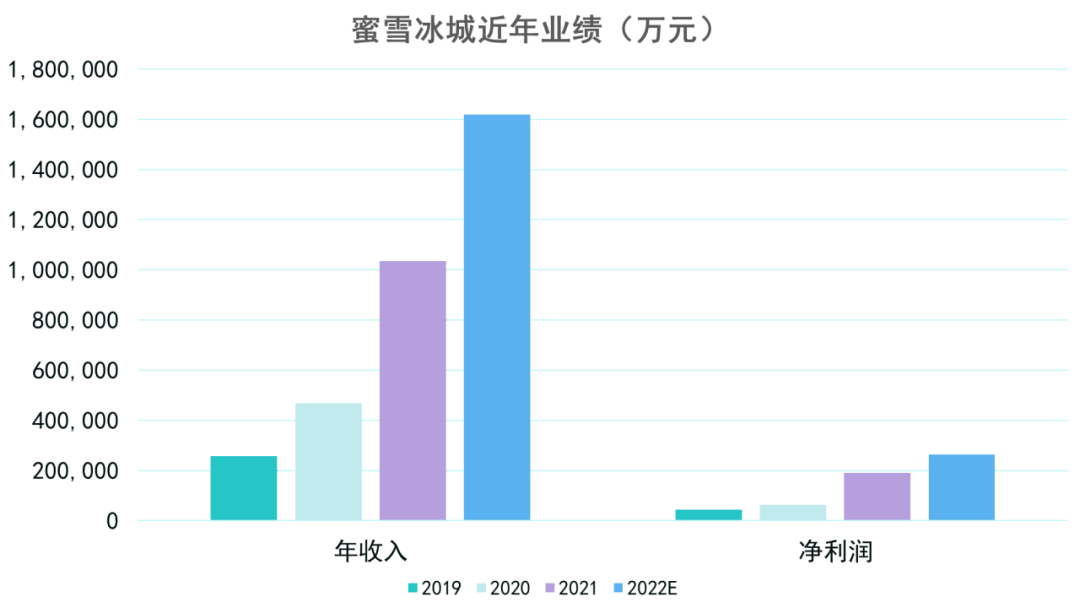 2021年年中,蜜雪冰城发布了品牌主题曲,热度极高,同年营收获得较大增长,与出圈级别的营销不无关系。