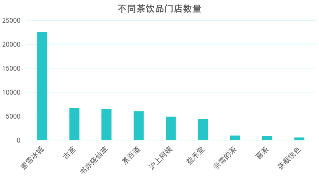 目前,蜜雪冰城最新录得门店数量为23419家,冠绝所有茶饮品牌。