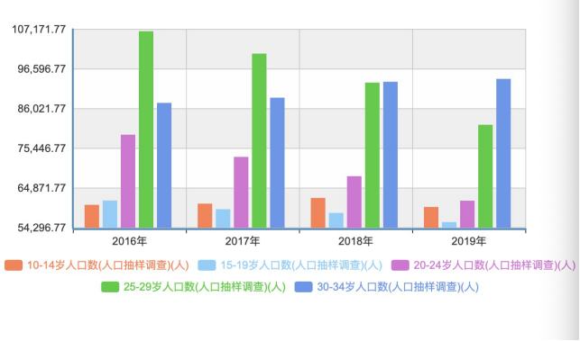 1.5亿和4亿之间,空间巨大。第三方数据机构艾瑞数据显示,2020年B站超过86%的月活用户在35岁及以下。国家统计局网站数据显示,2016-2019年,中国35岁以下人口结构中,25-34岁人口占绝对比例(如下图)。如果B站的测算,中国目前35岁以下人口总数为5亿,B站要抓住4亿,就要抓住25-35岁这个核心年龄段用户的“眼睛”。