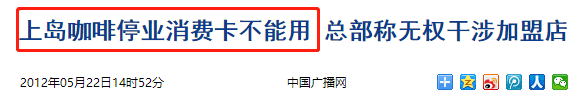 其实“加盟”本身并没有太大问题,但上岛咖啡的错误就在于,其只想收取加盟费,却对加盟门店的良莠情况放任不管。
