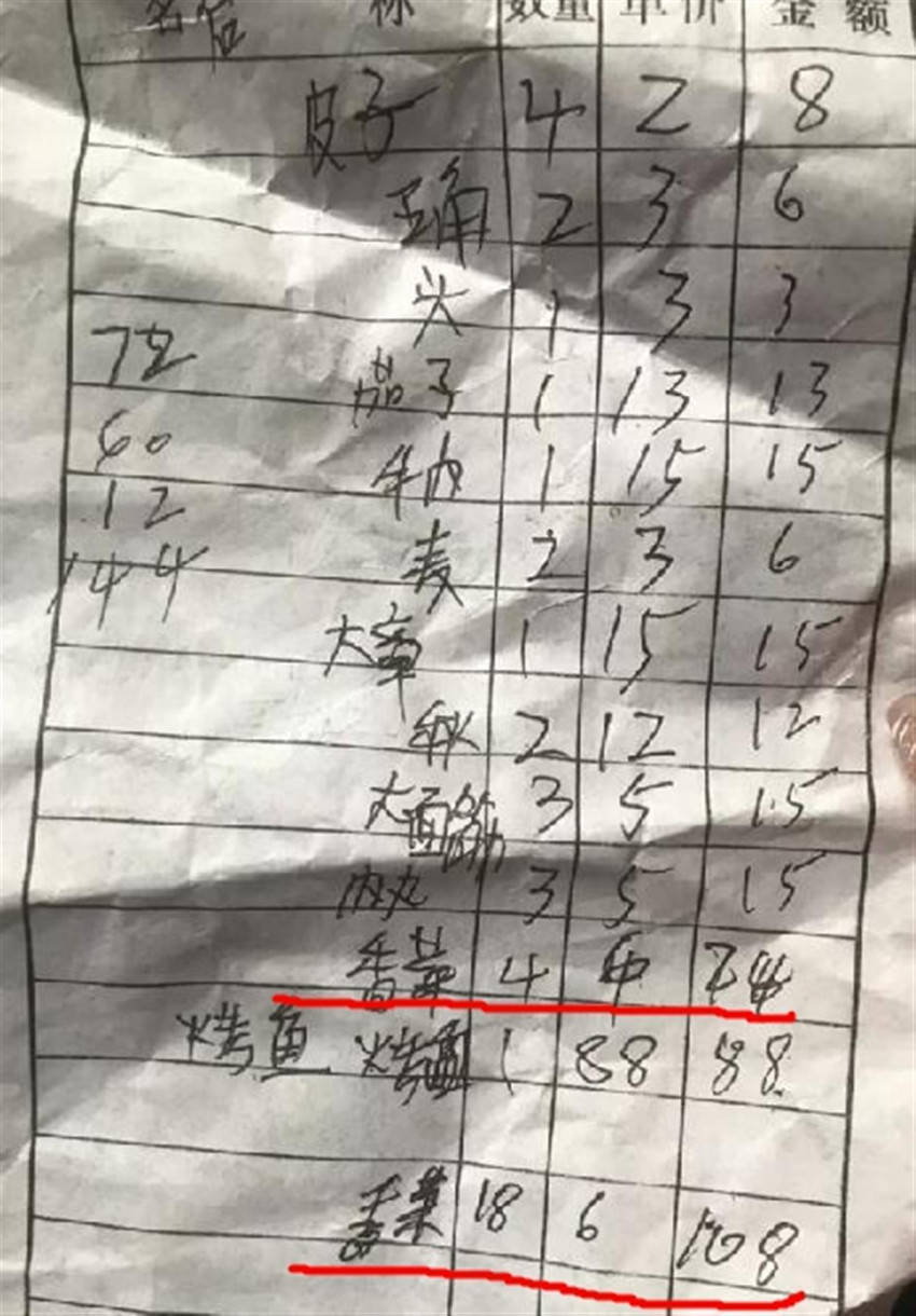 当事人的消费账单(视频截图)