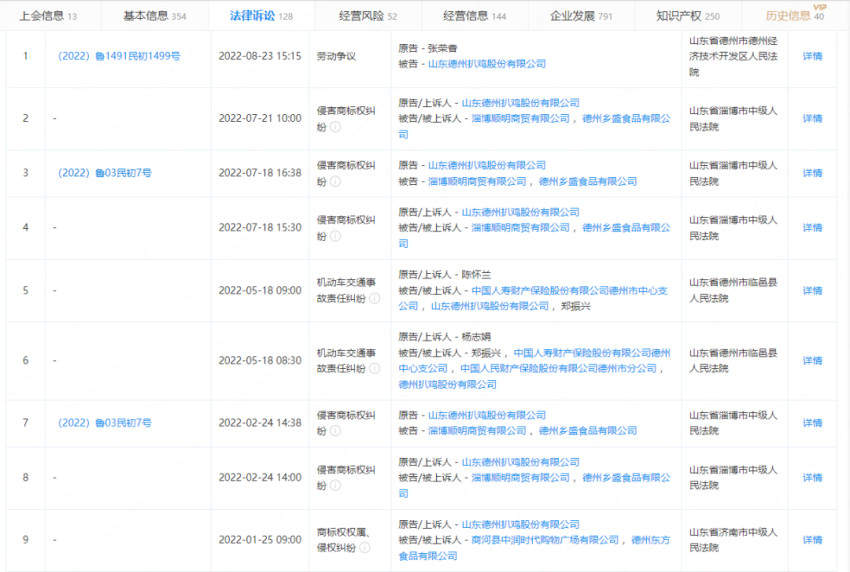 以去年冲击IPO的山东德州扒鸡股份有限公司为例,按照当时该公司披露的对外招股书来看,公司的核心优势为手中所持有的德州扒鸡品牌。但现实情况却是,“德州扒鸡”公司和当地同行之间频频上演着商标侵权纠纷。