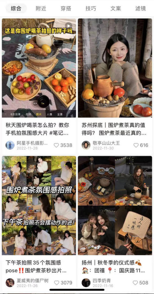 在晒围炉煮茶照片的评论区里,许多网友表达对围炉煮茶的主要诉求——出美图。围炉煮的第一杯茶,烤的第一片红薯,不喂自己先喂相机。