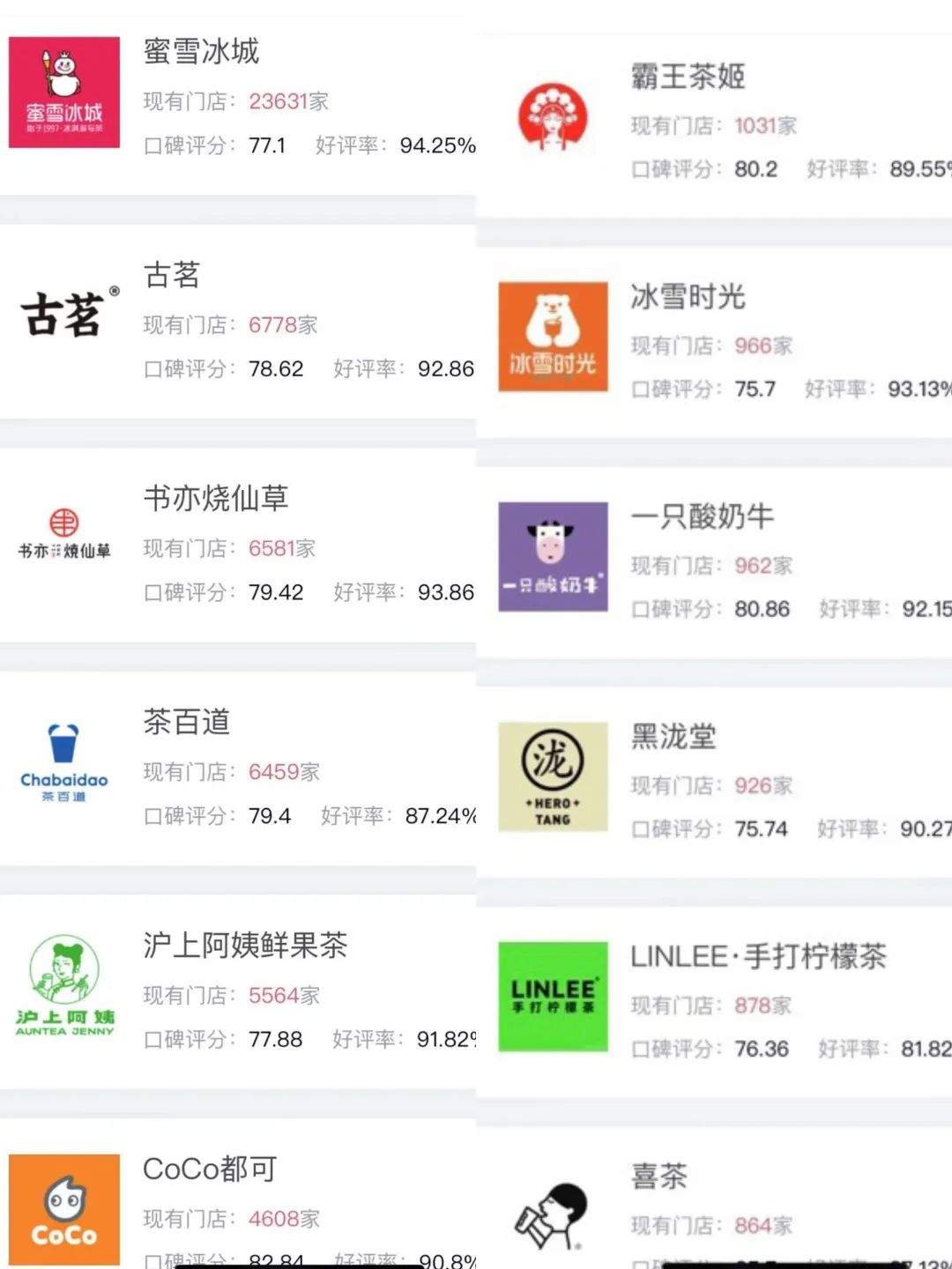 紧随其后的书亦烧仙草、茶百道、沪上阿姨门店数也都超过或接近6000家。它们也走的是加盟路线,“加盟万店”很快便可能成为新的行业数量级标杆。