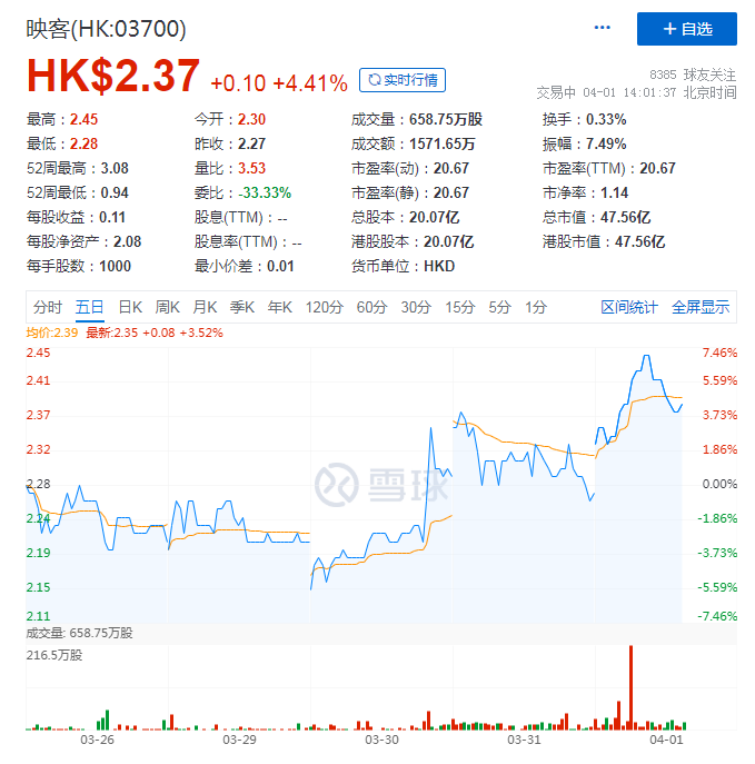 从财报整体数据来看,业绩表现还是比较优异,财报公布后,次日港股开盘,股价2.35港元,涨幅2.62%。截至发稿,映客股价2.37港元,涨幅4.41%。