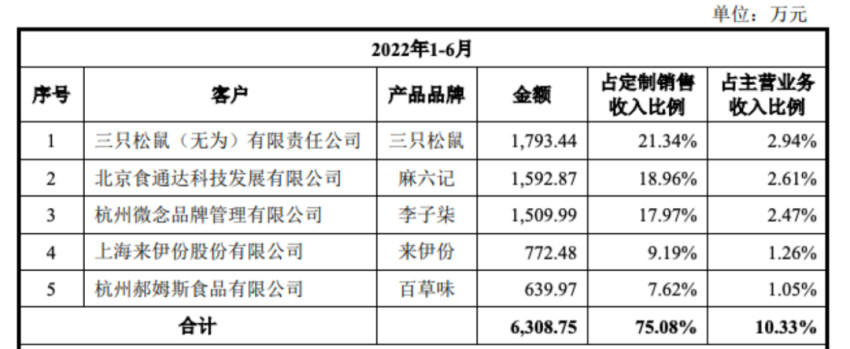 值得注意的是,2022年上半年,汪小菲出任董事的麻六记直接跃升为阿宽食品定制销售业务的第二大客户。彼时,汪小菲因与明星大S的家庭纠纷而被议论得沸沸扬扬,直接促就了前者主创的“麻六记”酸辣粉的销量飙升,麻六记在半年里一口气订购了1592.87万元阿宽食品的贴牌酸辣粉产品。在此之前的2019—2021年,麻六记一直未曾出现在阿宽食品前五大客户的名单中。
