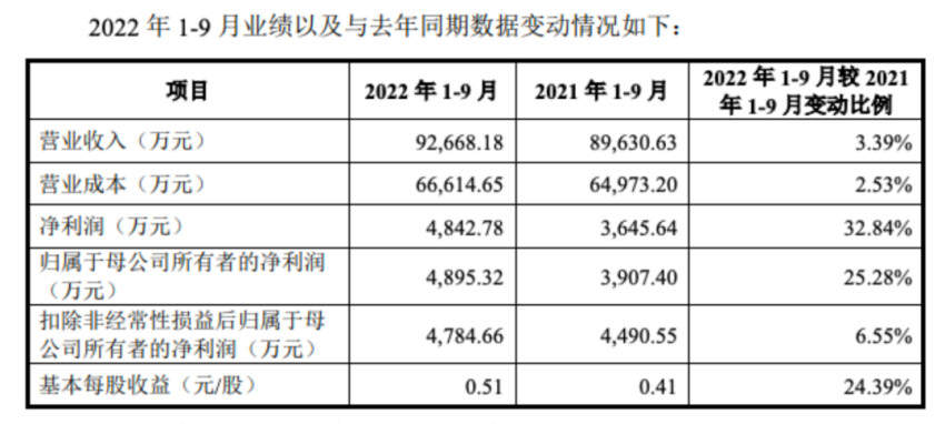 根据招股书,2019—2021年,阿宽食品的营收分别为6.31 亿元、11.10亿元和12.14亿元,复合年增长率为 38.72%;净利润分别为2400万元、7600万元和5600万元。2022年前三季度,阿宽食品的营收同比增长3.39%至9.27亿元,净利润则同比增长32.84%至4800万元。