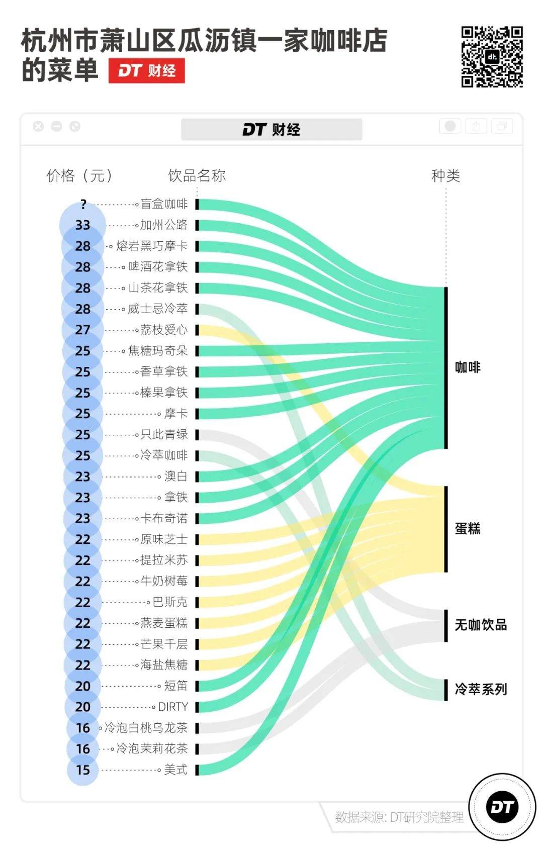 不仅是品牌的多样,县城咖啡的价位范围也非常宽泛。