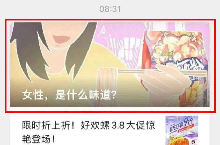 据多位网友反映,3月8日早上8点半,知名螺蛳粉品牌“好欢螺”在其官方微信公众号上发出了一篇名为《女性,是什么味道?》的推文。该文章一经发出,该文章的标题即刻引发众多网友热议。目前,该涉事文章已被删除。