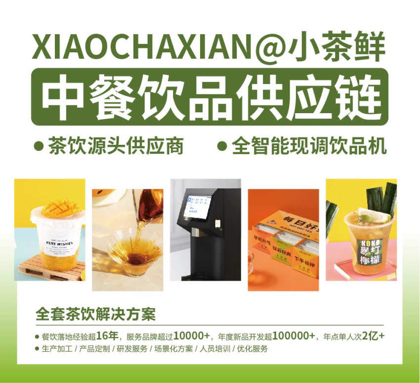 “小茶鲜中餐饮品供应链”主要服务于中餐饮品板块,包含各类饮品原物料生产研发、定制餐单方案、设备开发应用、物料销售配送、营销策划等一站式饮品解决方案服务。其中,在设备应用方面,首创全智能现调饮品机,解决了餐饮饮品的诸多难题。全国运营服务中心包括:广州公司、北京公司、上海公司、成都公司。