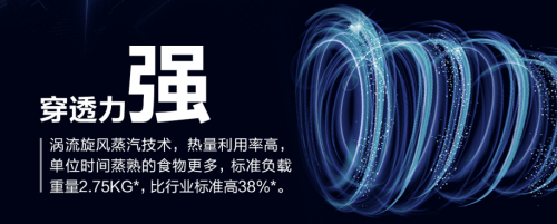 涡流旋风蒸汽技术则带来了“更强的穿透力”,让用户可以在单位时间内蒸熟更多食物。它通过风扇,主动改变每缕蒸汽的流动路径,使其更有力地环绕、穿过食材。据实验室数据显示,澎湃大蒸汽的标准负载重量可达到2.75kg,比行业标准高了38%!
