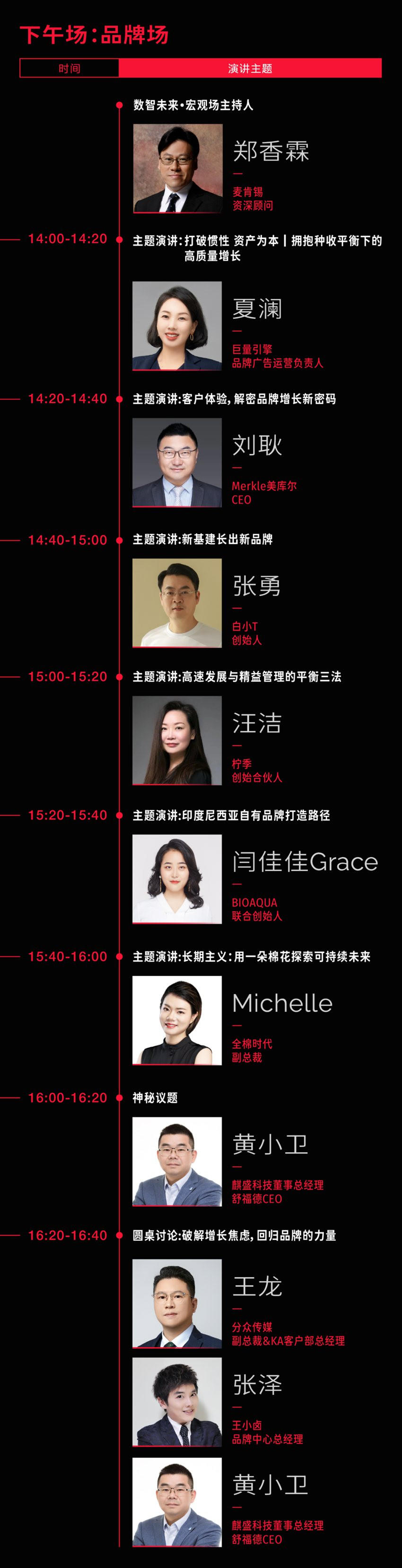 除了以上趋势外,更有一些精彩的话题值得关注。比如品牌在腾讯应该怎么玩?在小红书应该怎么玩?在抖音应该怎么玩?如何研发好的“产品”同时将产品打造成“爆品”?怎么做好供应链?怎么提高服务效率?资本市场在看什么?