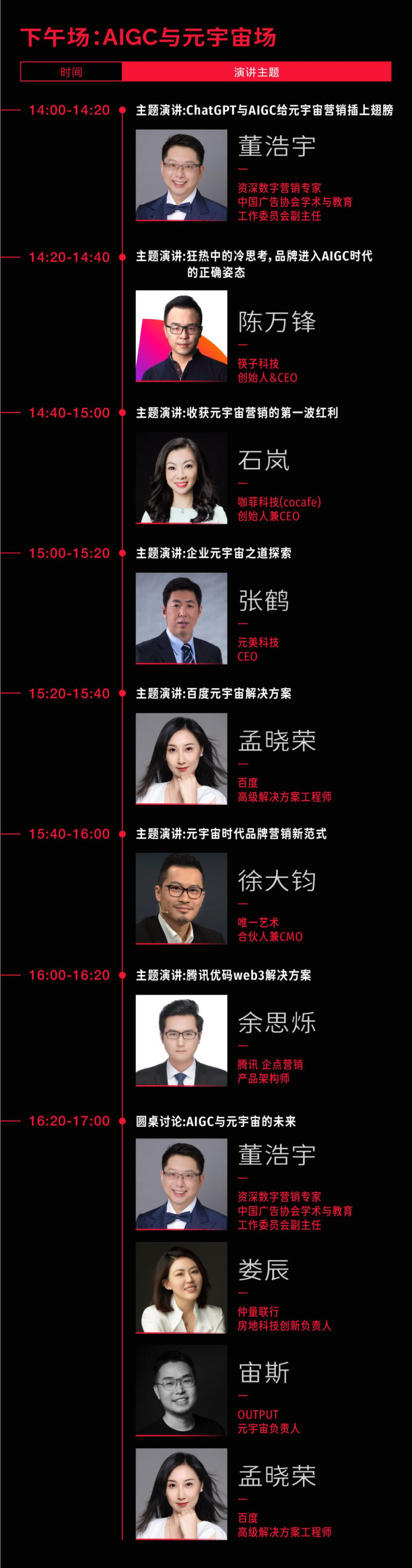 对此,本届灵眸大赏也特别设计了「AIGC与元宇宙」专场,将会探讨《收获元宇宙营销的第一波红利》、《百度元宇宙解决方案》、《腾讯优码web3解决方案》.......不同话题,带大家一起探索如何掘金元宇宙。