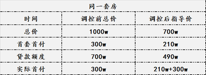 比如调控前一 套市场价格1000w左右的房子,调控后指导价在700w,那对于买家而言,首付比例,就是300w和510w 的差别。