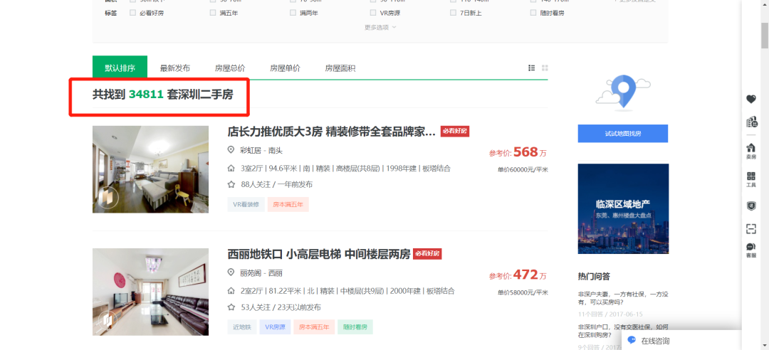 目前深圳市场的二手房源,3.4w套左右。