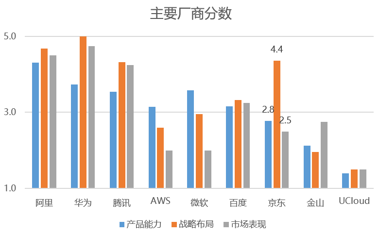 具体分数上,京东智联云的战略表现排名第三,落后于阿里、华为,略优于腾讯。
