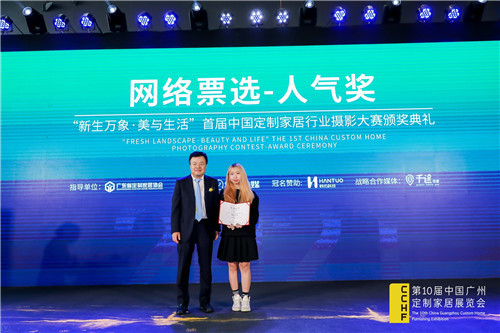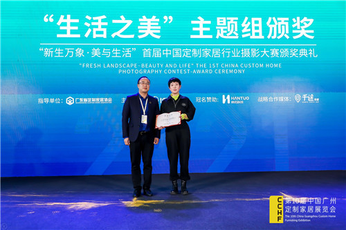 由广东省定制家居协会发起,广州博骏传媒主办,韩拓科技冠名赞助的“新生万象·美与生活”首届中国定制家居行业摄影大赛评选结果在本次展会上进行揭晓,并于3月26日下午“升·势——2021中国定制家居产业峰会”上,韩拓科技举办了隆重的颁奖仪式。