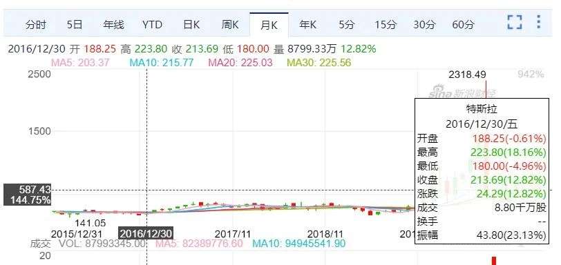 特斯拉股价示意图