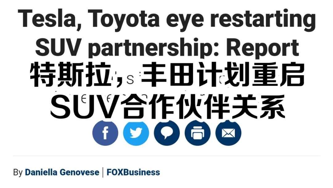 Torque News:Tesla and Toyota Are Considering Jointly Developing a Small Electric SUV Platform