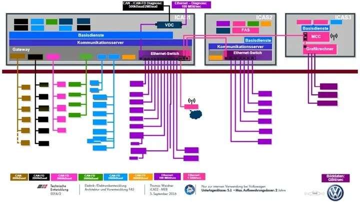 就像大众的MEB平台,也采用3个域控系统,可是随着几十个ECU的功能集成到三大域控制器中,硬件高度集成化导致软件开发难度倍增。