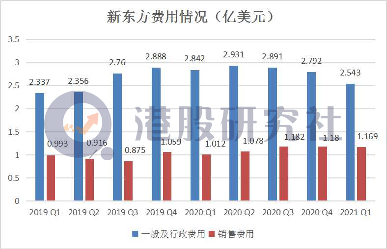 再加上教师薪酬、学校和学习中心租金的增加,以及为了扩大竞争优势,新东方增加了客服人员和市场营销人员。这些举措导致新东方营业成本同比增加5.6%至4.649亿美元。销售费用同比增长15.5%至1.169亿美元,给新东方带来了极大的负担。