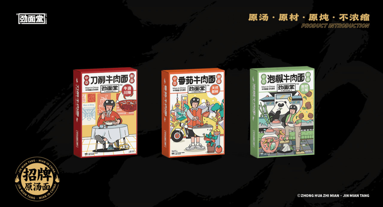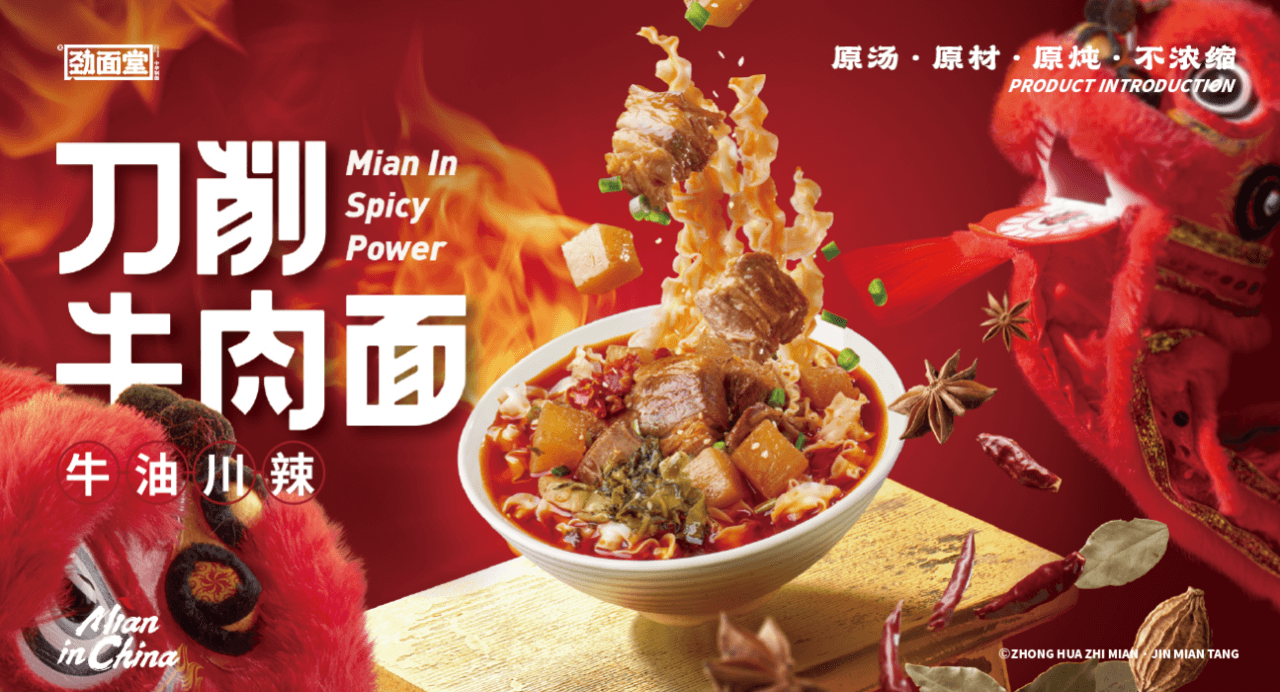 原汤系列包括牛肉刀削面(牛油川辣)、番茄牛肉面、泡椒牛肉面3种口味;中华十大名面系列则是经典还原了陕西油泼面、河南羊肉烩面、四川担担面等地域名面。