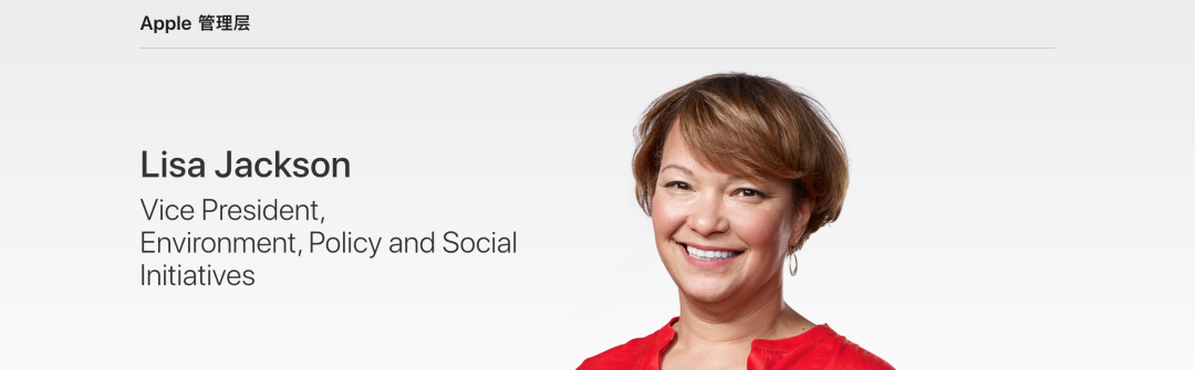 2013年,为了更好处理苹果运营和发展过程中存在的且愈加突出的环保议题,库克力邀去职不久的前美国环境保护局局长丽莎·杰克逊(Lisa Jackson)执掌公司的环境部门,职位为副总裁。