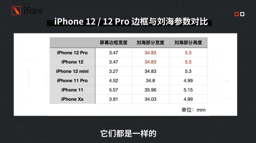 根据苹果官方提供的 CAD 数据图,我们整理出了这几代 iPhone 的边框数据。iPhone 12 和 12 Pro 不仅拥有同样的屏幕尺寸,在边框宽度,厚度部分,它们都是一样的。