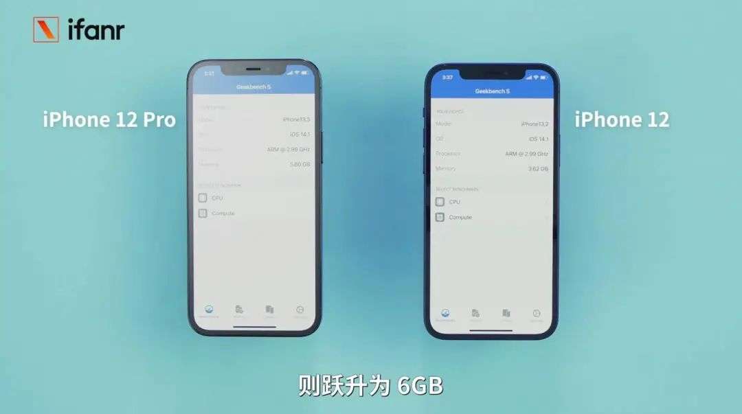 iPhone 12 配备了 4GB 的运存,和去年 iPhone 11 保持一致,但 iPhone 12 Pro 运存则跃升为 6GB。