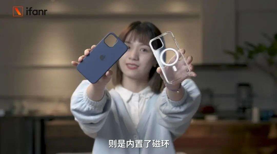 至于这两个保护壳,则是内置了磁环以及磁力计的 MagSafe 配件。因为只有这样设计,套上保护壳的 iPhone 12 才不至于影响 MagSafe 充电器的吸附性能。