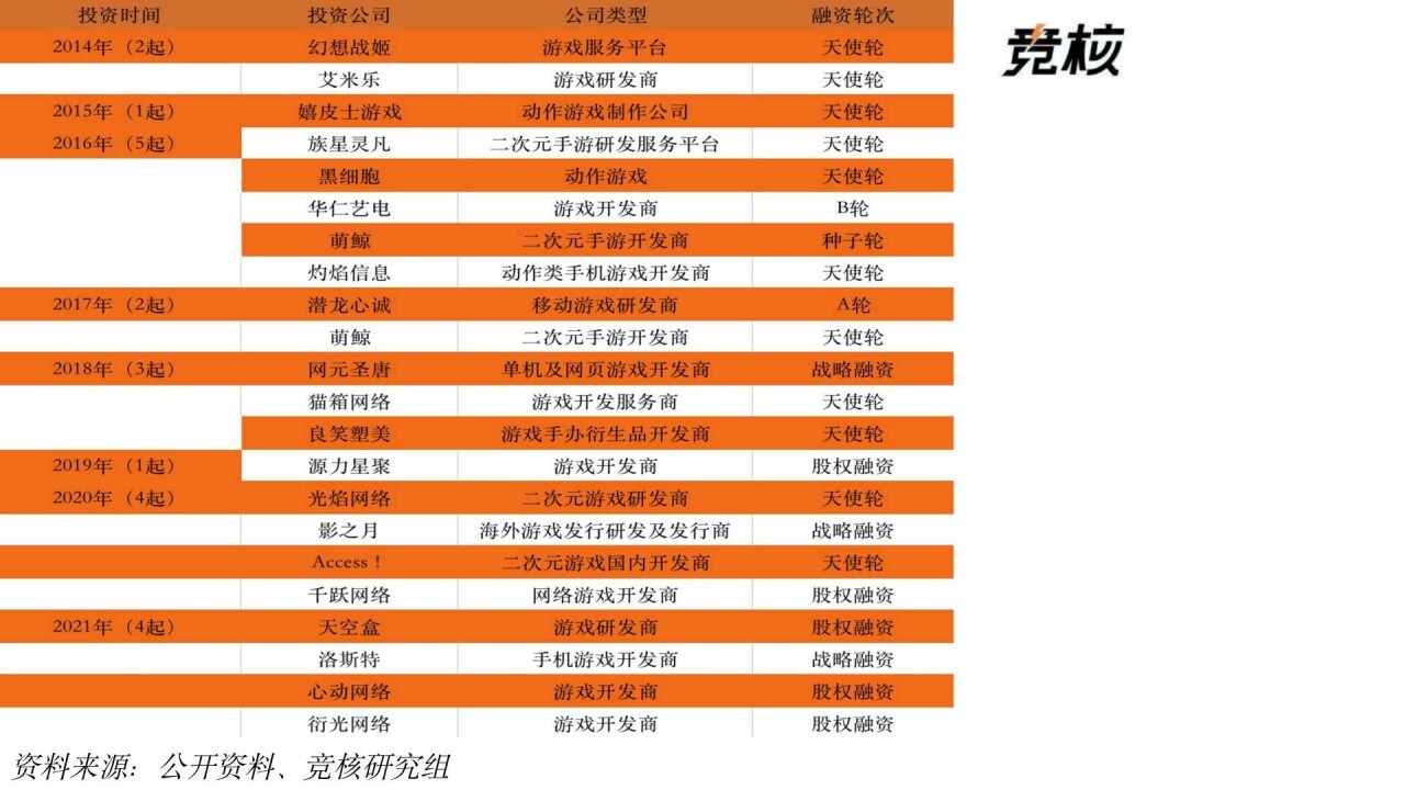 截至2021年4月2日, B站共投资超过44家游戏公司,包括嬉皮士游戏、萌鲸网络、御宅游戏等游戏公司。