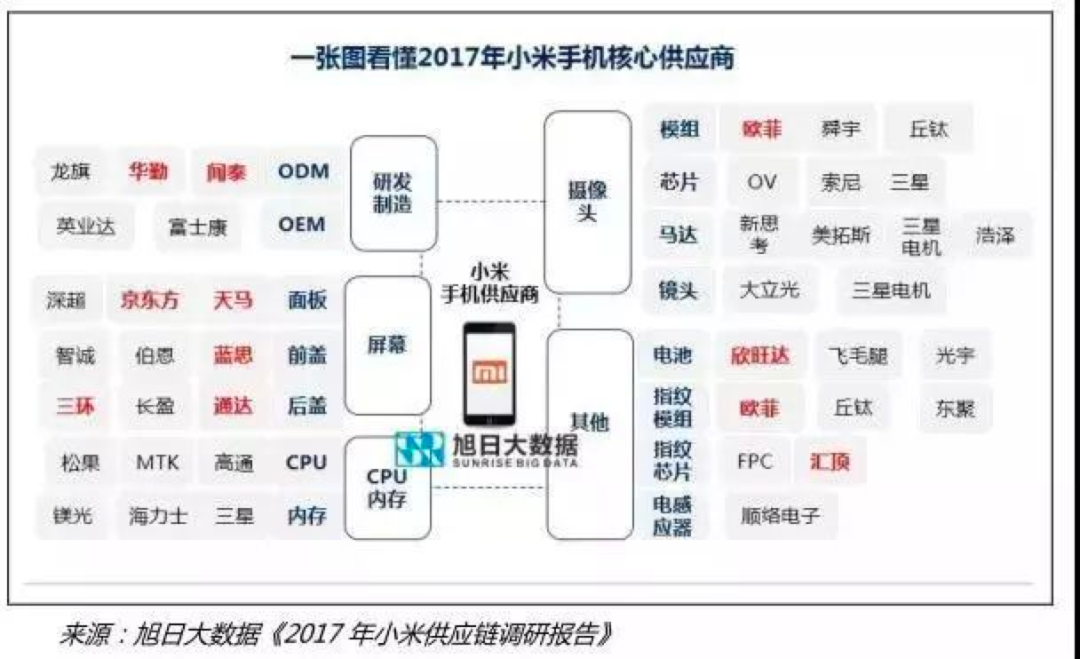 众所周知,小米最大的特点是通过采购零件进行组装,生产出性价比更高、成本更低的商品。其供应商也是国内外电子半导体和产业链相关环节头部企业,除了拥有手机等业务线,不少都涉及汽车电子领域,如电池供应商欣旺达、电感应器制造商顺络电子等。