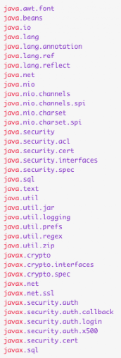 Google总共拷贝了37个包,共计11500行代码,而Java 的代码总共有286万行代码,仅占0.4%,以下为37个包。