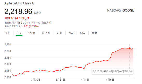 谷歌「赢」后,其市值也随后大涨,飙升近600亿美元。