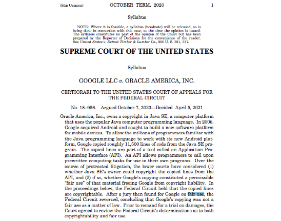 https://www.scotusblog.com/2021/04/google-wins-copyright-clash-with-oracle-over-computer-code/