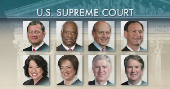 克拉伦斯·托马斯大法官(一排右一&二排左二)和塞缪尔·阿利托(一排左五&二排右一)大法官表示异议。