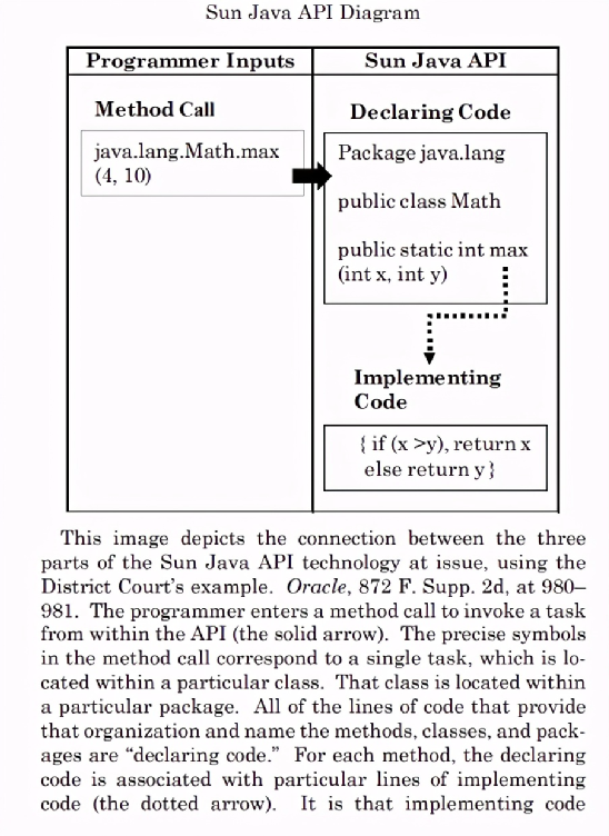 其次,Java API有一个特殊的命令「方法调用」,Oracle并没有声称程序员使用库中的方法调用侵犯了版权。
