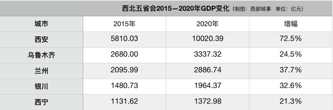 在西北五座省会(首府)城市中,过去5年,兰州GDP增幅达到37.7%,尽管超过了银川、乌鲁木齐、西宁,但差不多仅有西安增速的一半。也就是说与龙头西安的差距在继续拉大。