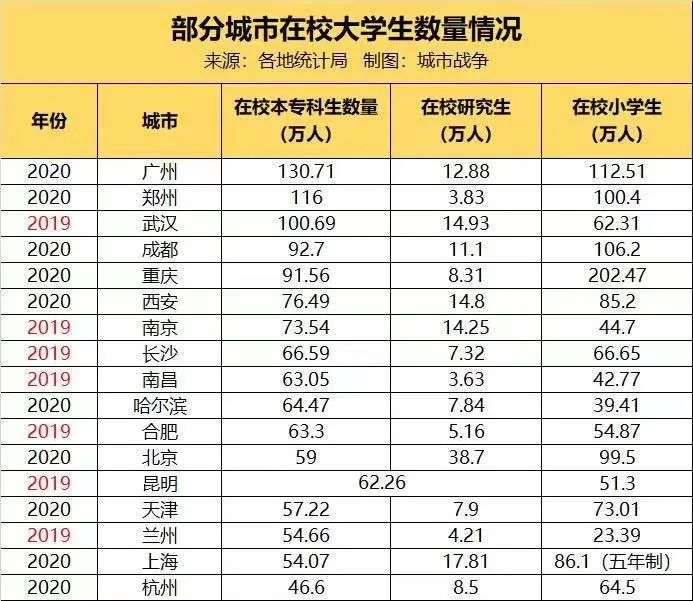 2020年,兰州普通高校在校生达56.03万人。其与城市常住人口的比例,要高出绝大多数城市。