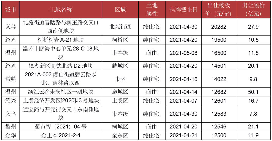 由于义乌地市火爆,最终引发了调控,新政发布后义乌首次供应的4宗商住地均落实了“限地价,竞配套用房”的出让方式,在限地价新政的制约之下,高溢价率现象势必得到一定程度的缓解;不过如果考虑到竞配套住房的成本,地价大概率还是处于相对高位。
