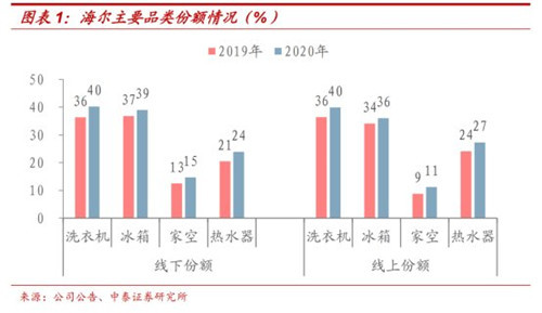 中泰证券分析认为:2020年海尔外销增长受益于海外供应链受损下的出口高增。后续看海外的增长机会有望来自于:1、海外持续实现品类拓展,如美国市场新开发热水器、滚筒洗衣机业务等;2、抓住疫情后海外线上渗透机会,把握海外电商市场增长红利。