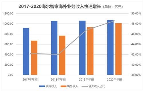 其中,2020年海尔智家的海外业务收入破千亿,增幅达到8.61%;经营利润增幅26.97%,海外经营利润率提升0.6PCT,创历史新高。