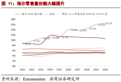 浙商证券指出,在并购一系列海外品牌后,海尔智家有望通过采购、制造协同,海外业务降本增效,以及管理上的改善提升盈利能力。