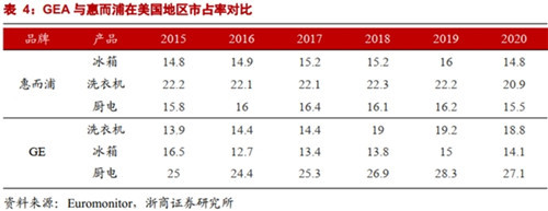 值得一提的是,在技术层面,海尔智家通过全球研发与创新中心在冰水技术、热泵技术、直驱电机、冰箱自由嵌入式设计技术上赋能GEA的短板——冰箱和洗衣机产品线,最终在冰洗产品线市占率上逐渐缩小差距或赶超。